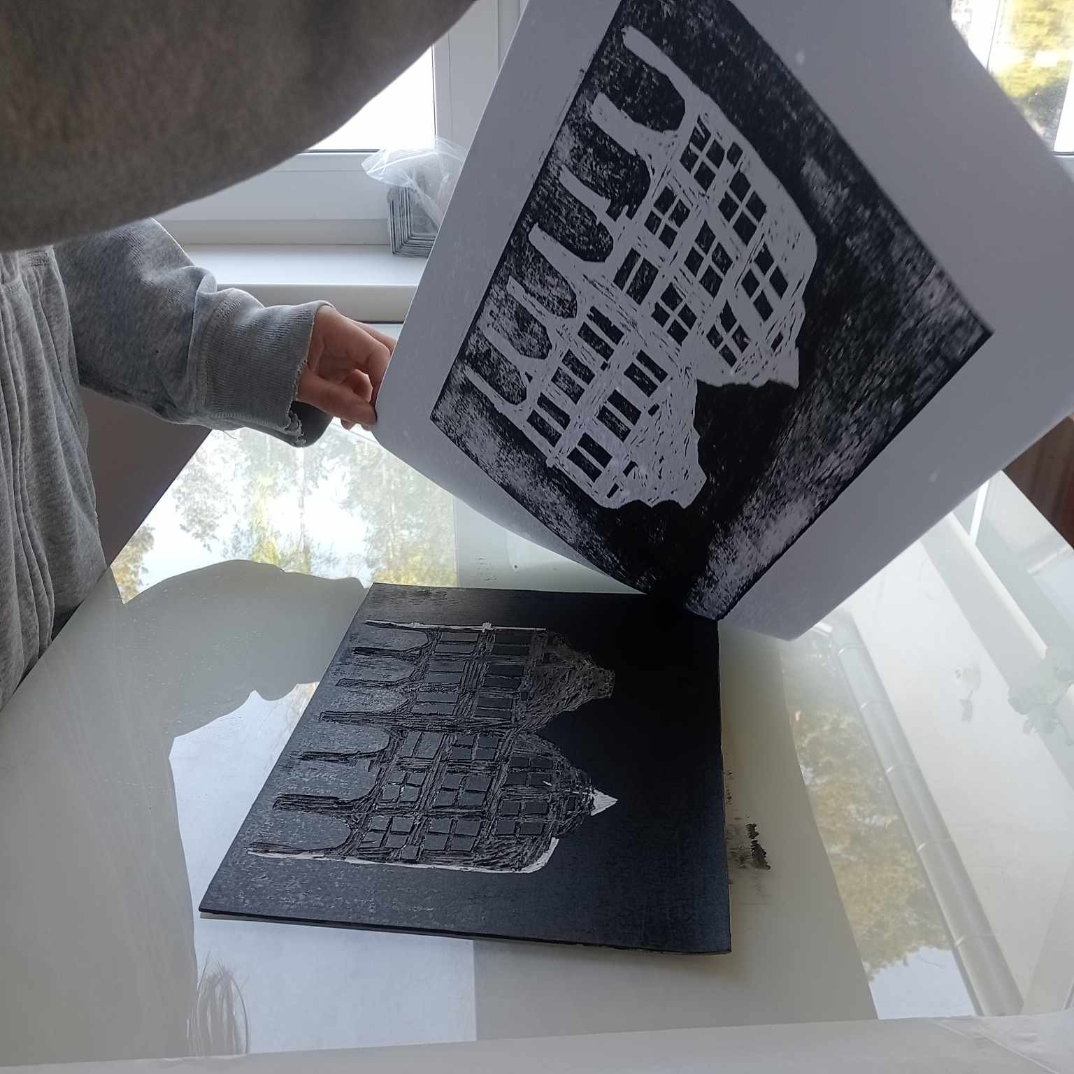 Pracujemy z różnymi technikami grafiki warsztatowej i druku artystycznego, łącząc działanie manualne z myśleniem koncepcyjnym i rozmową o procesie twórczym.